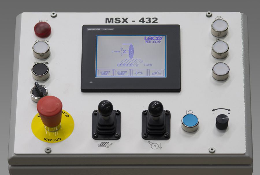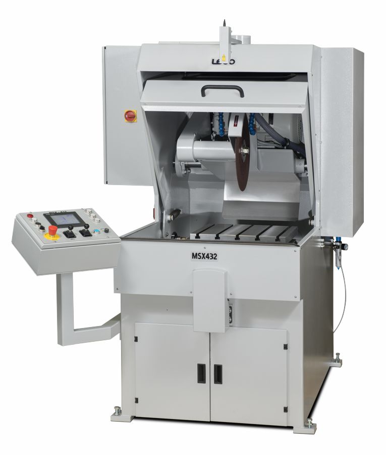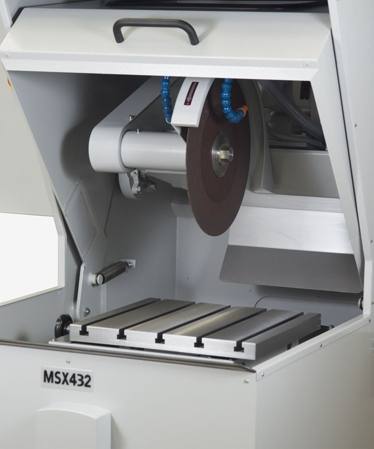 Las máquinas de corte de la serie MSX432 son de bancada (apoyadas en el suelo) y están diseñadas para el corte de grandes piezas de materiales de alta aleación y endurecidos. Pequeños tiempos de contacto por impacto junto con una intensa refrigeración proveen los efectos de corte frío requeridos para el examen micro estructural, (capacidad de disco de 432 mm y motor de 20.1 HP).