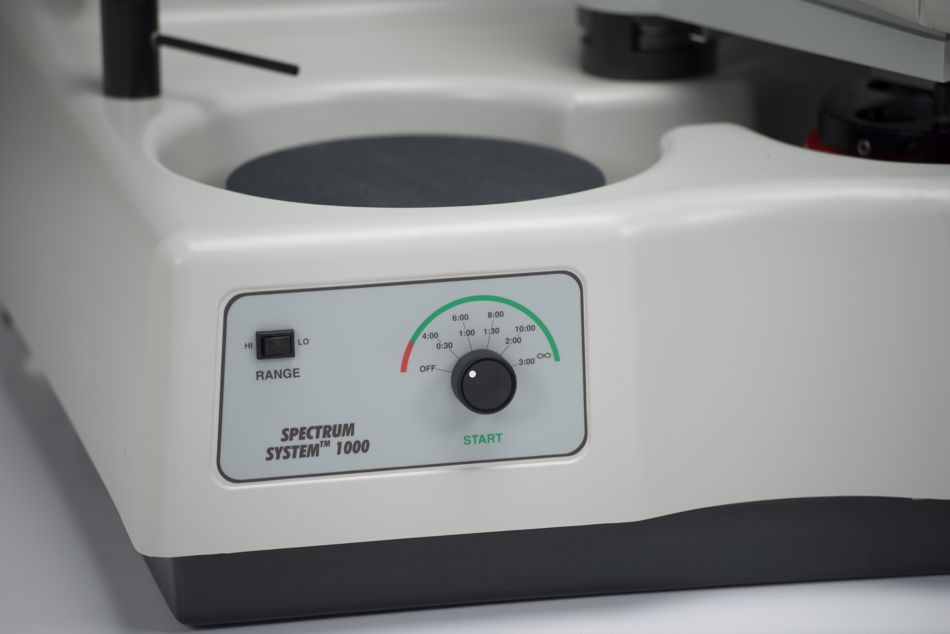La Spectrum System 1000 es una lijadora o pulidora de dos platos de 8 pulg. (200 mm), ideal para laboratorios de volumen bajo a mediano. Está disponible como unidad básica independiente manual o con un cabezal oscilante para la preparación de muestras semiautomática. El potente motor de 0.5 HP (373W) maneja ambas ruedas simultáneamente. Las opciones tales como agregar el conjunto del cabezal y el dispensador maximizan la eficiencia y la productividad en su laboratorio.
